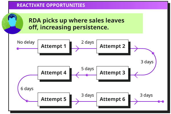 The AI can be a first point of contact for new leads, qualify those leads before hand-off to a live rep, follow up with prospects who have gone cold after initial outreach, or restart conversations with former customers to win them back.